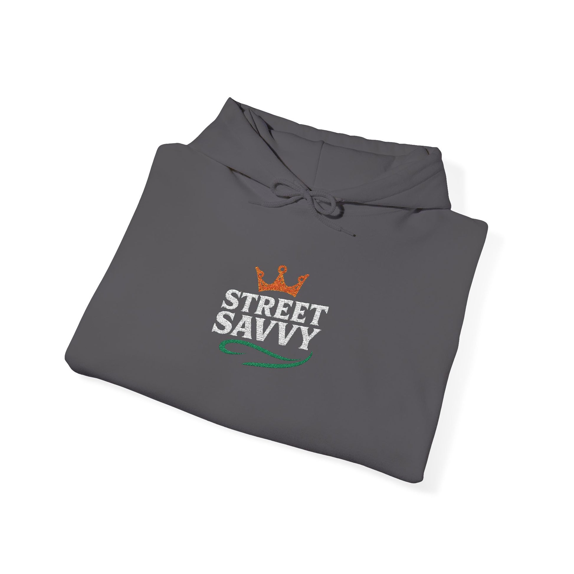Savvy king hoodie embroidered, perfect for adding a touch of style to your casual outfit. This unisex heavy blend hoodie offers cozy warmth and a soft feel, ideal for chilly days. The spacious pockets and adjustable drawstring hood add functionality and comfort. Suitable for adults and can be worn for casual outings, lounging at home, or running errands. Great for adding a fashionable touch to your wardrobe during cooler seasons.