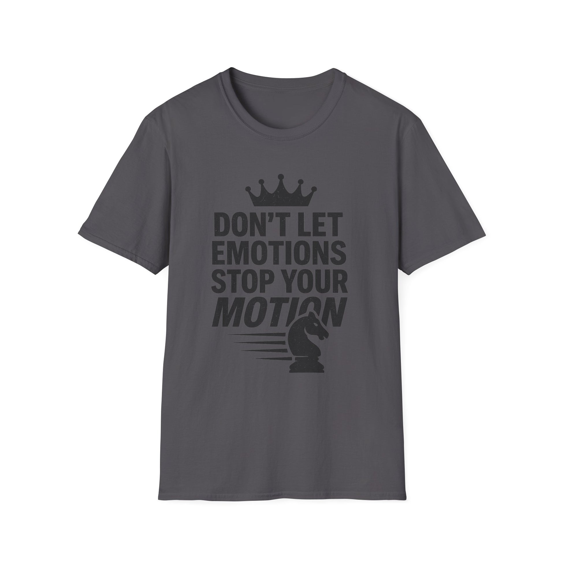 A motivational quote T-shirt that inspires you to keep moving forward despite your emotions. This softstyle unisex T-shirt is perfect for everyday wear and can easily be styled up or down. Suitable for adults, this tee is made from durable and smooth fabric, perfect for printing, and features a classic fit with a crew neckline for versatile styling.
