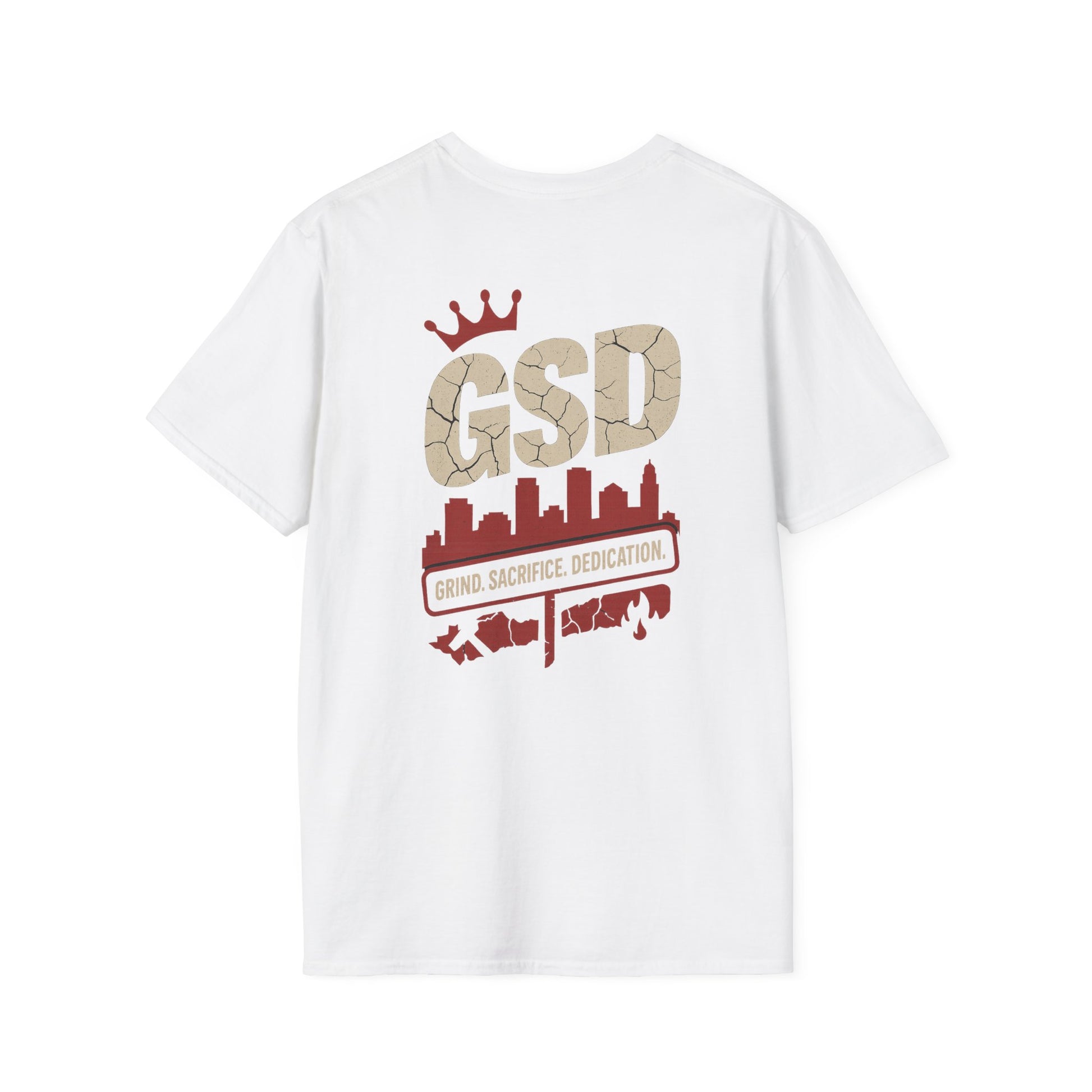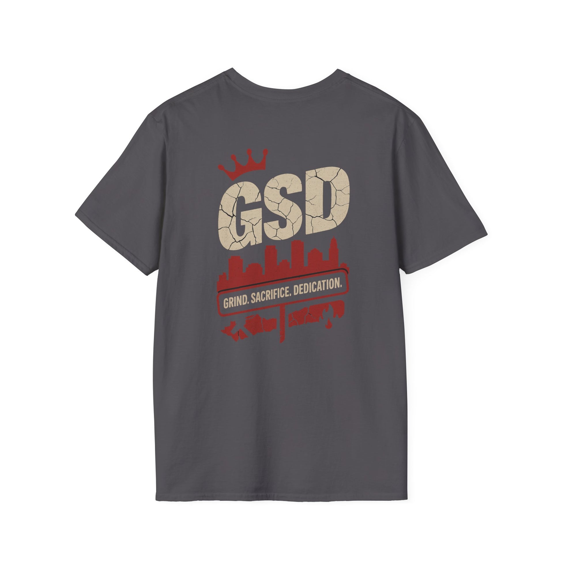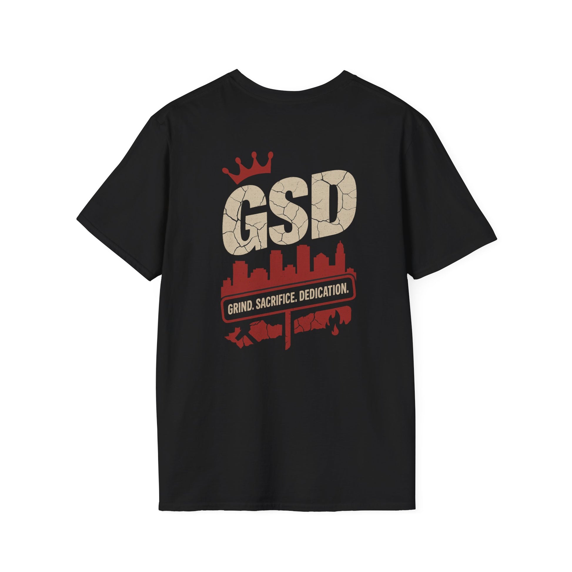 Grind sacrifice dedication tee. This T-Shirt exudes a sense of hard work and dedication, perfect for those who are focused on achieving their goals. It is ideal for individuals who value perseverance and determination. This shirt is relevant for events celebrating hard work, dedication, and achievement.