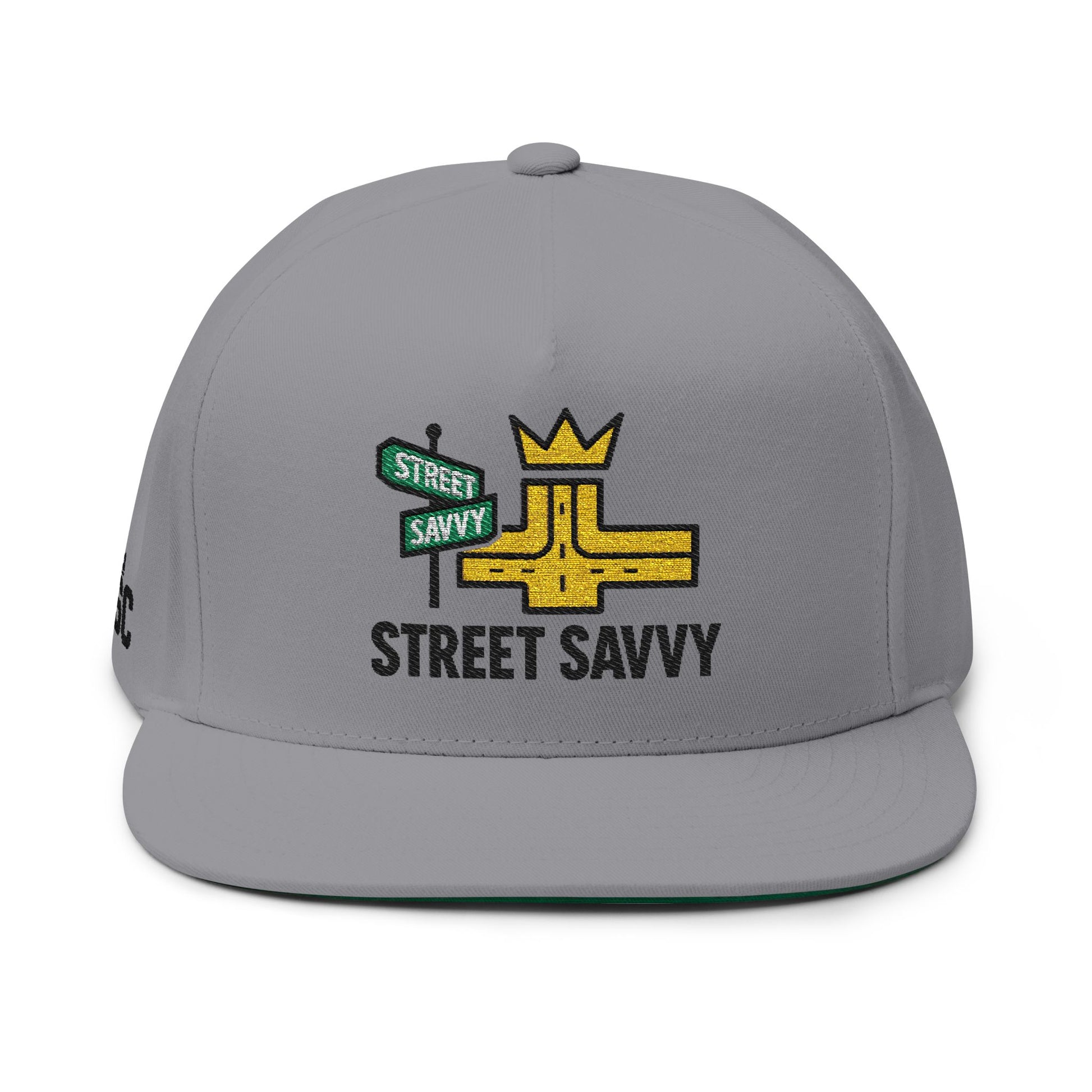 Street Savvy Embroidered Flat Bill Cap | Stylish Headwear, Urban Fashion, Gift for Men and Women, Outfit Accessory, Streetwear Essential